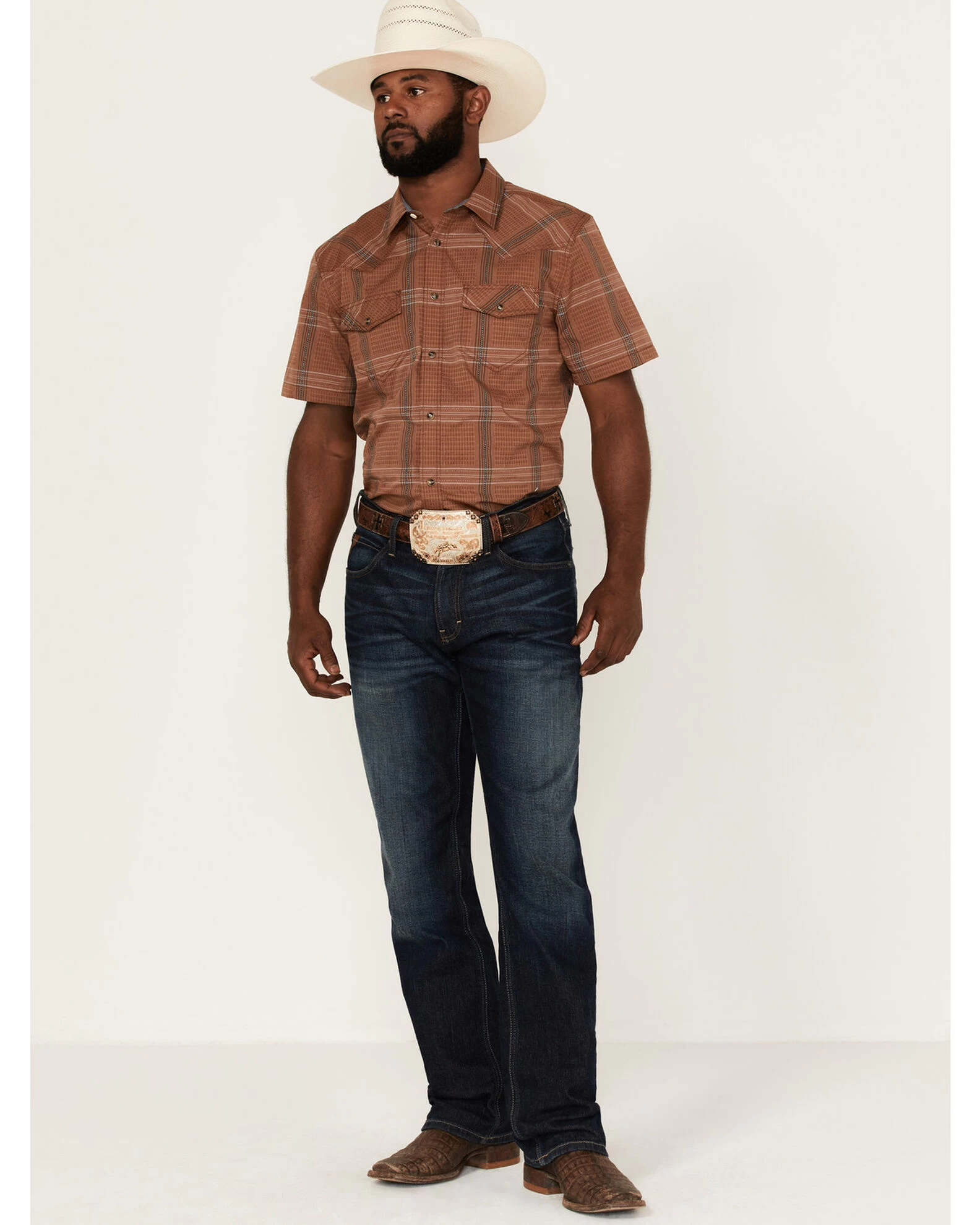 Cody James Men’s Easl End Large Plaid Short Sleeve Snap Western Shirt
